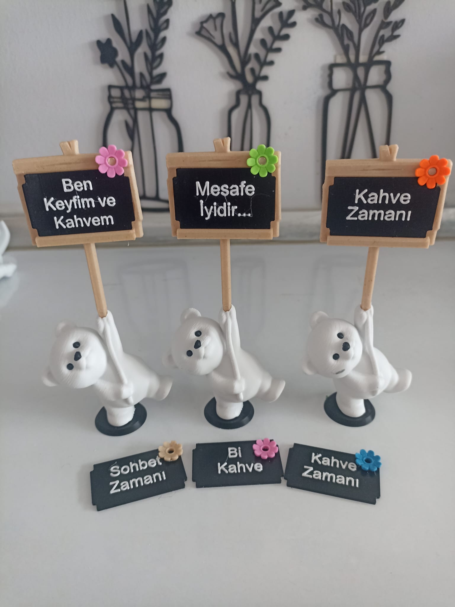 9 Parça Sevimli Kahve Yanı Dekorasyon Bi Kahve 15 cm Plastiktir