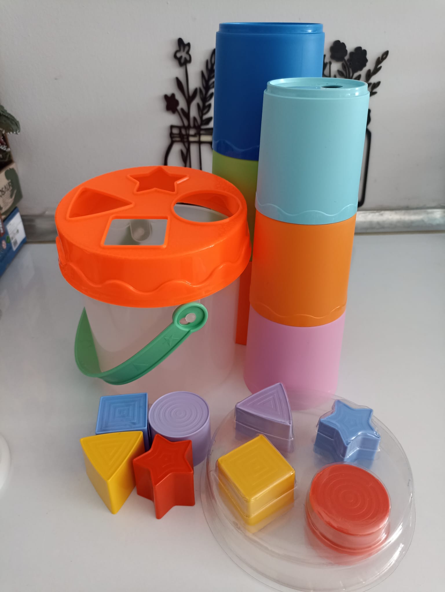 – 16 parça kule yapımına uygun, iç içe geçen kovalarla eğlenceli vakit geçirin.
