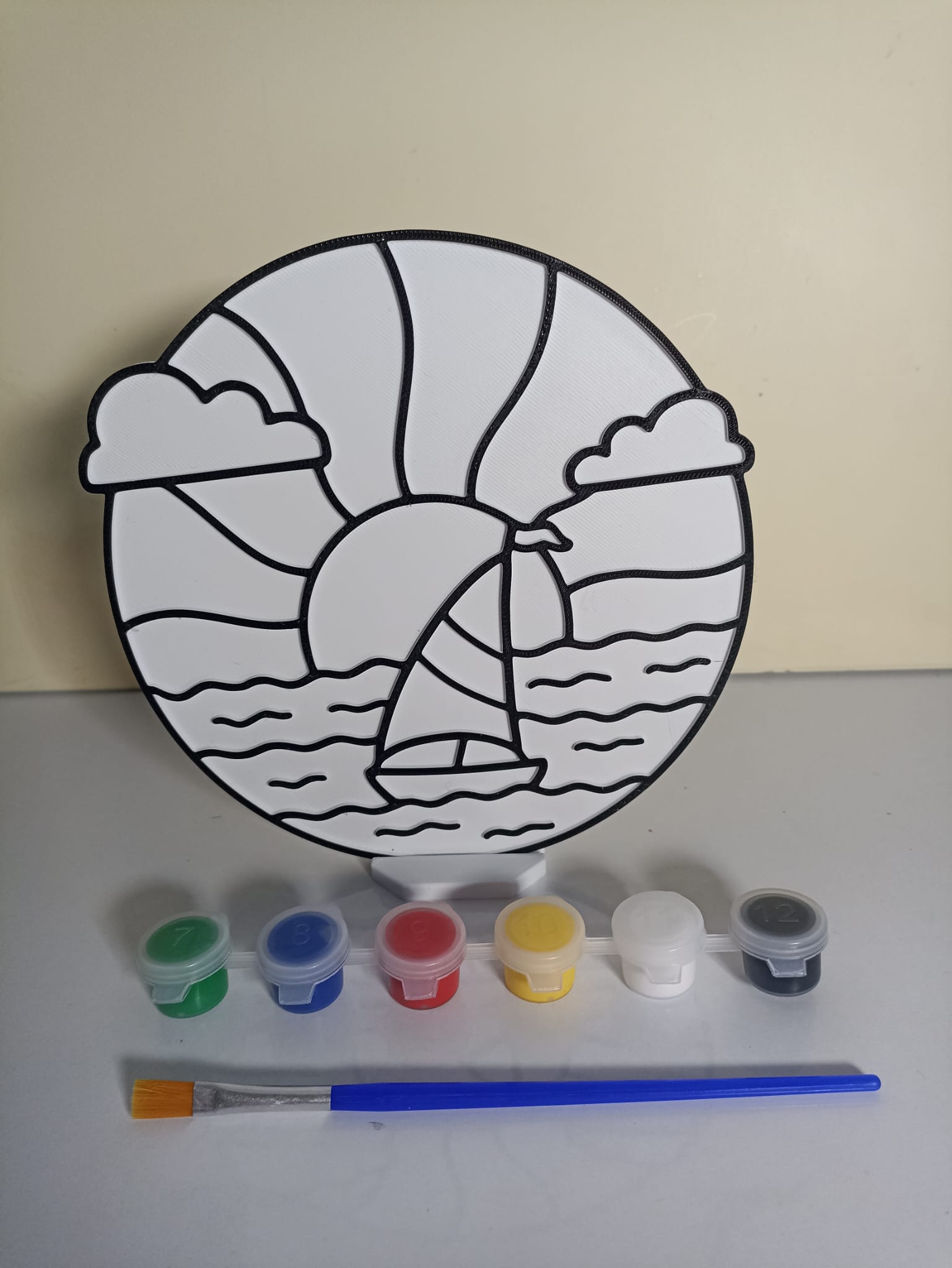 Yelkenli Gün Batımı Boyama etkinliği 17 cm 6 LI BOYA VE FIRÇA DAHİLDİR PLASTİKTİR